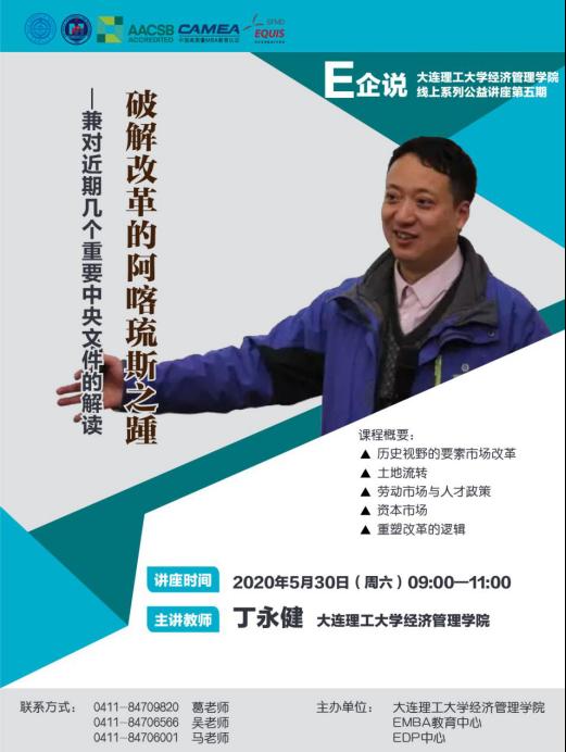外部压力催生内部改革动力,疫情发生以来,全面深化改革又有了新举措。大连理工大学经济管理学院丁永健副教授通过讲故事的方式展开本期讲座,结合近期中央发布的三个重要文件:《中共中央国务院关于构建更加完善的要素市场化配置体制机制的意见》(4月9日)、《中共中央国务院关于新时代推进西部大开发形成新格局的指导意见》(5月17日)、《中共中央国务院关于新时代加快完善社会主义市场经济体制的意见》(5月18日),探讨后疫情时代改革的新形势,帮助每一位在线的学员扩展对中国改革的认知。