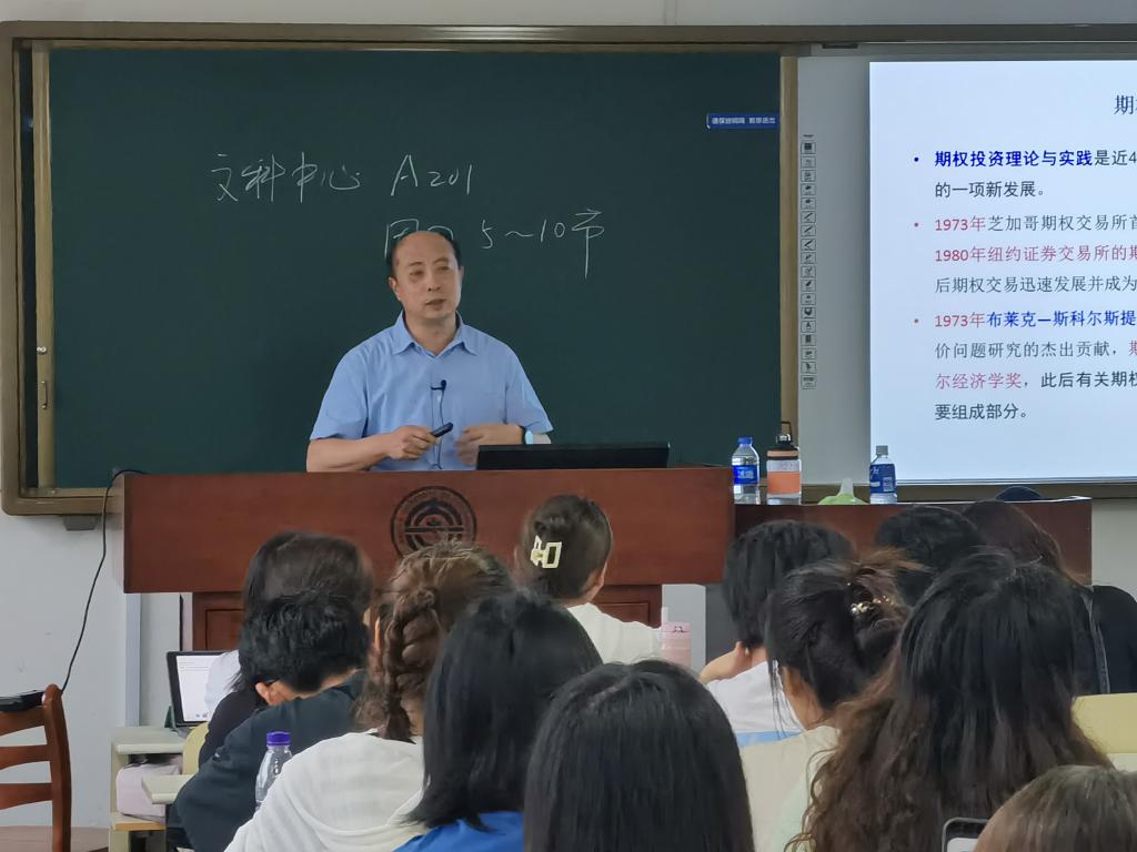 6月29日晚,我院和大连商品交易所联合开办的“大连商品交易所期货人才培育班”(暨“期货理论与应用”公共选修课)在综合教学楼313教室顺利开课。经管学院兆文军副教授为学员们讲授了第一节课,题目为《期权基础知识及交易策略》。本次课程在大连商品交易所的支持下由经济管理学院组织实施,培训对象为经济、金融、贸易、管理等专业及其他与交易所品种相关的农业类和工业类院校相关院系的在校本科、研究生,课程计划培训学生70人(本科生40人、研究生30人),总课程学时为四十八课时,其中本科生3学分,研究生不设置学分。