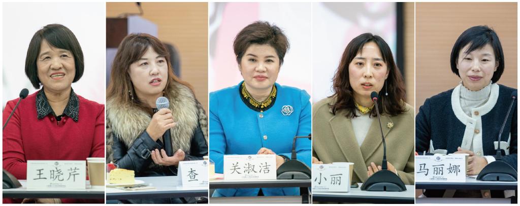 本次活动特别邀请到晓芹海参董事长兼总经理王晓芹、大连海事大学科技园副总经理(前金山人力资源总监)查智、大连市甘井子区女企业家协会会长关淑洁、大连新众智能装备有限公司总经理郭小丽、大连通胜印刷股份有限公司总经理马丽娜等奋战在商海一线的女企业家,与经管学院五十余位教职员工面对面畅谈职场和生活。