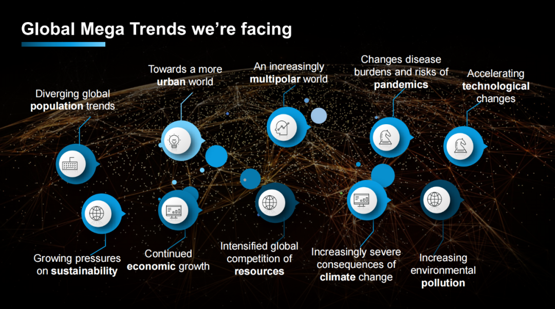 柯曼教授指出,当今世界高速发展,机遇与挑战并存。他从人口两极化发展、全球城市化趋势、疫情带来的改变与风险、气候变化的后果日益严重、可持续性压力越来越大五个方面进行了深刻阐述。