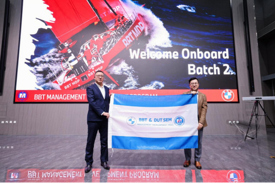 活动最后,由人力资源高级副总裁上官先生为二期学员代表授予班旗,并祝贺来自各部门的优秀管理者正式成为BBT MDP项目的二期学员。