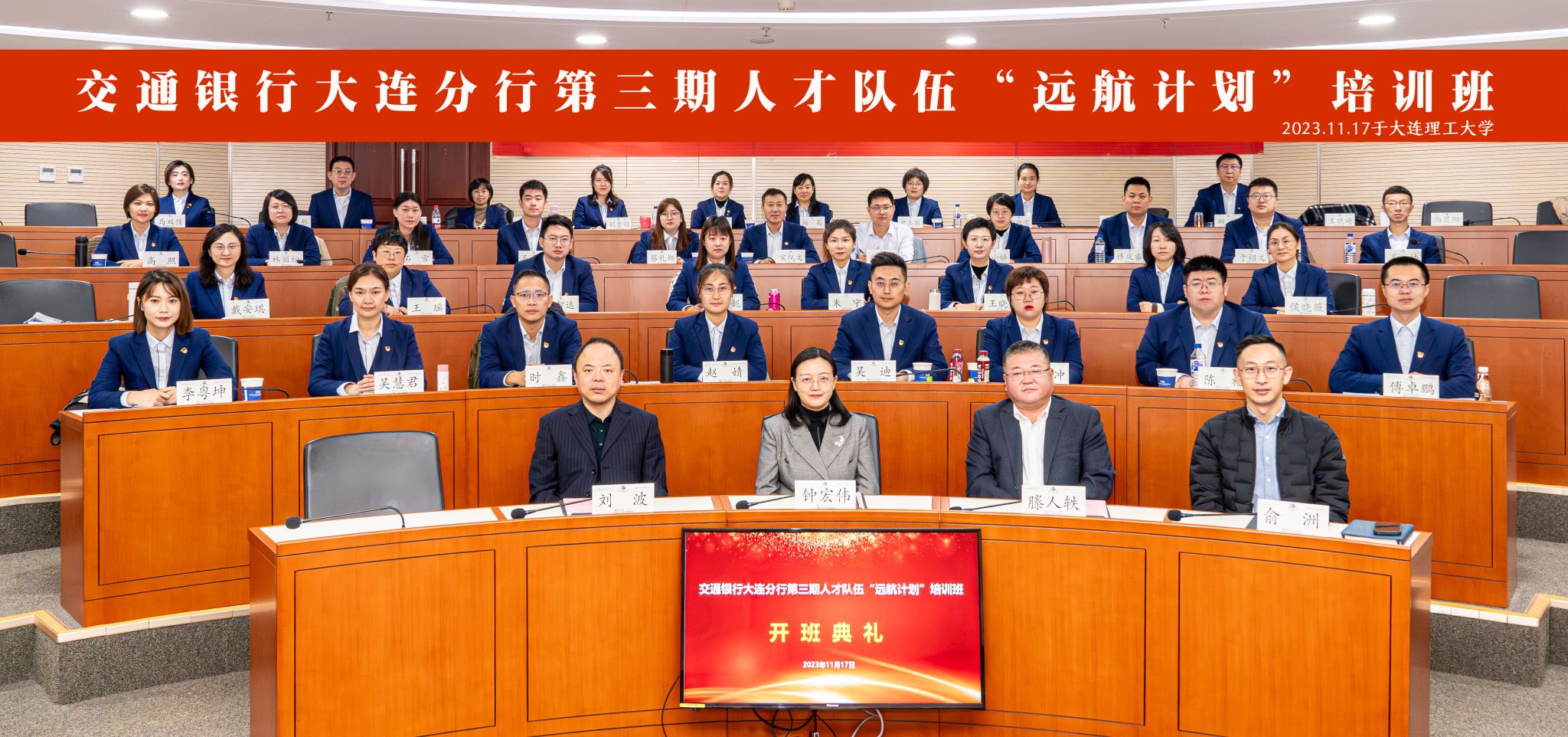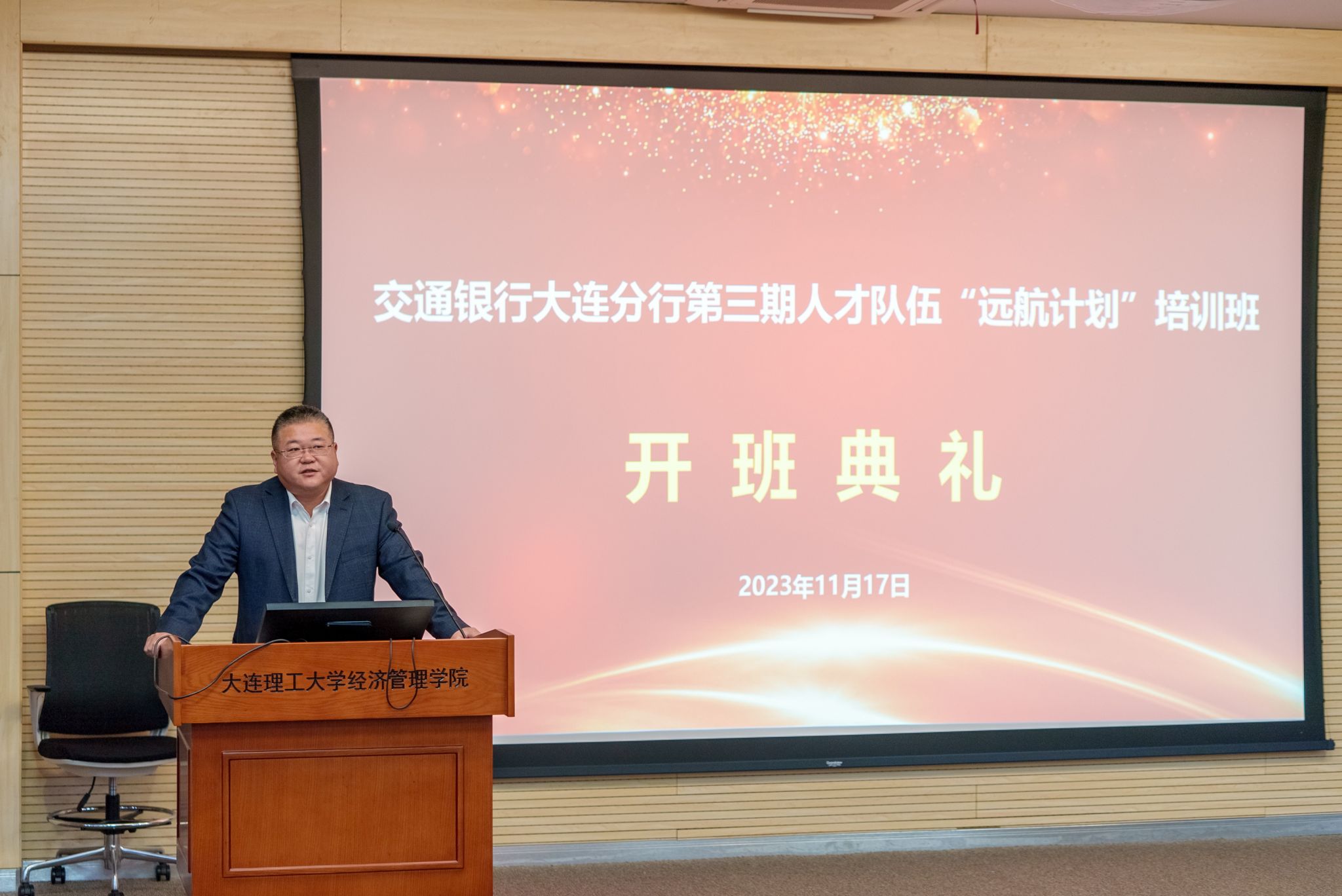 2023年11月17日,交通银行大连分行第三期人才队伍“远航计划”培训班在大连理工大学经济管理学院A301举行开班典礼。交通银行大连分行党委委员、纪委书记钟宏伟,党委组织部部长、人力资源部总经理刘波,大连理工大学经济管理学院副院长滕人轶,培训中心主任俞洲出席。经济管理学院培训中心周王予一主持了本次开班典礼。