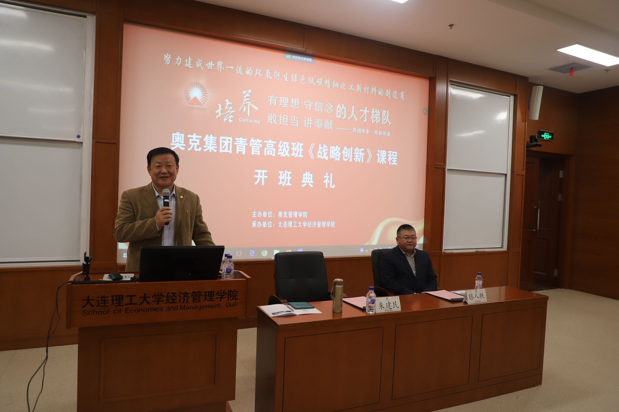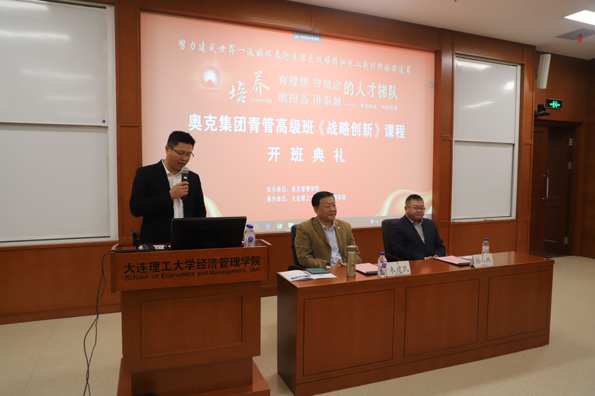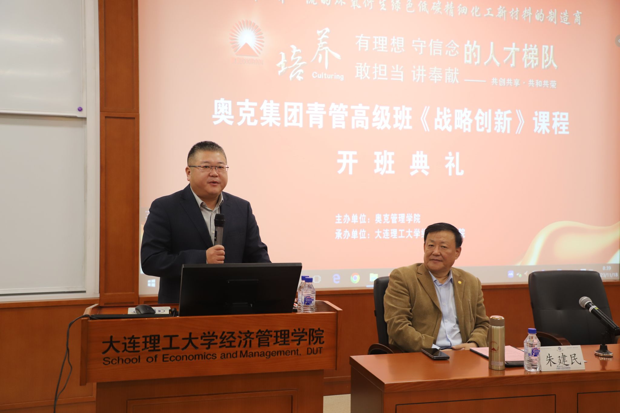 2023年11月18日,奥克集团青管高级班战略创新课程在大连理工大学经济管理学院正式开班。奥克集团董事局主席、奥克管理学院院长、导师朱建民,奥克集团董事、管理学院导师董振鹏、刘兆滨、仲崇纲,大连理工大学经济管理学院副院长滕人轶,课程主讲教师成力为教授出席了本次开班典礼。典礼由经济管理学院培训中心崔晓蕾主持。